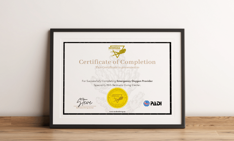Upon successful completion of the course, you'll receive a PADI Emergency Oxygen Provider certification by Bermuda Diving Center, which is recognized worldwide and valid for two years.